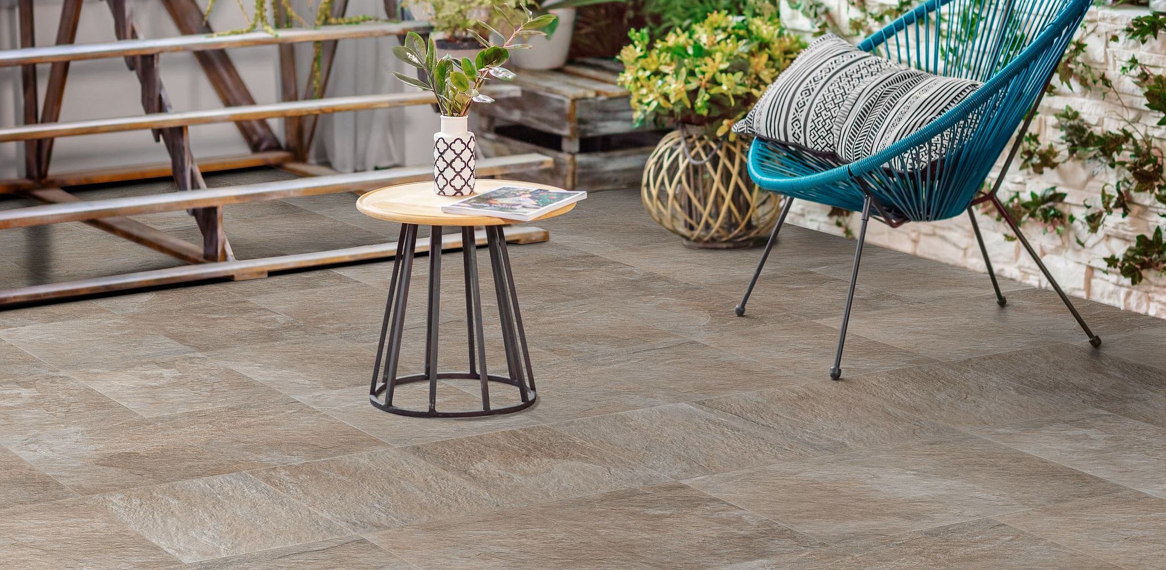 Mrazuvzdorná matná retifikovaná dlažba vhodná jak do interiéru tak do exteriéru díky svému reliéfnímu povrchu.
