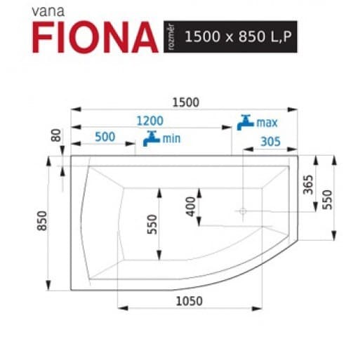 Asymetrická vana FIONA vyniká svým velkým vnitřním prostorem a současně působí velmi elegantně díky svým jemným čistým liniím. Je vhodná především do menších koupelen, kde je potřeba uspořit každý kousek místa.