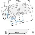 Největší předností asymetrické vany Fontána je její „úsporná šířka“ 90 cm, proto se stala velmi oblíbeným modelem u projektantů. Akrylátová vana je opatřena středovým přepadem a odtokem, což je konstrukční řešení ne zcela běžné u výrobků o délce 150, resp. 160 cm. Tato specialita může být pro některé zájemce při výběru vany velmi důležitá. Zádová opěrná část má velmi pozvolný sklon, který přináší pohodlnou relaxaci.