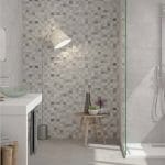Zajímavý šedý obklad, každý kus je originální. Dohromady tvoří elegantní celek.