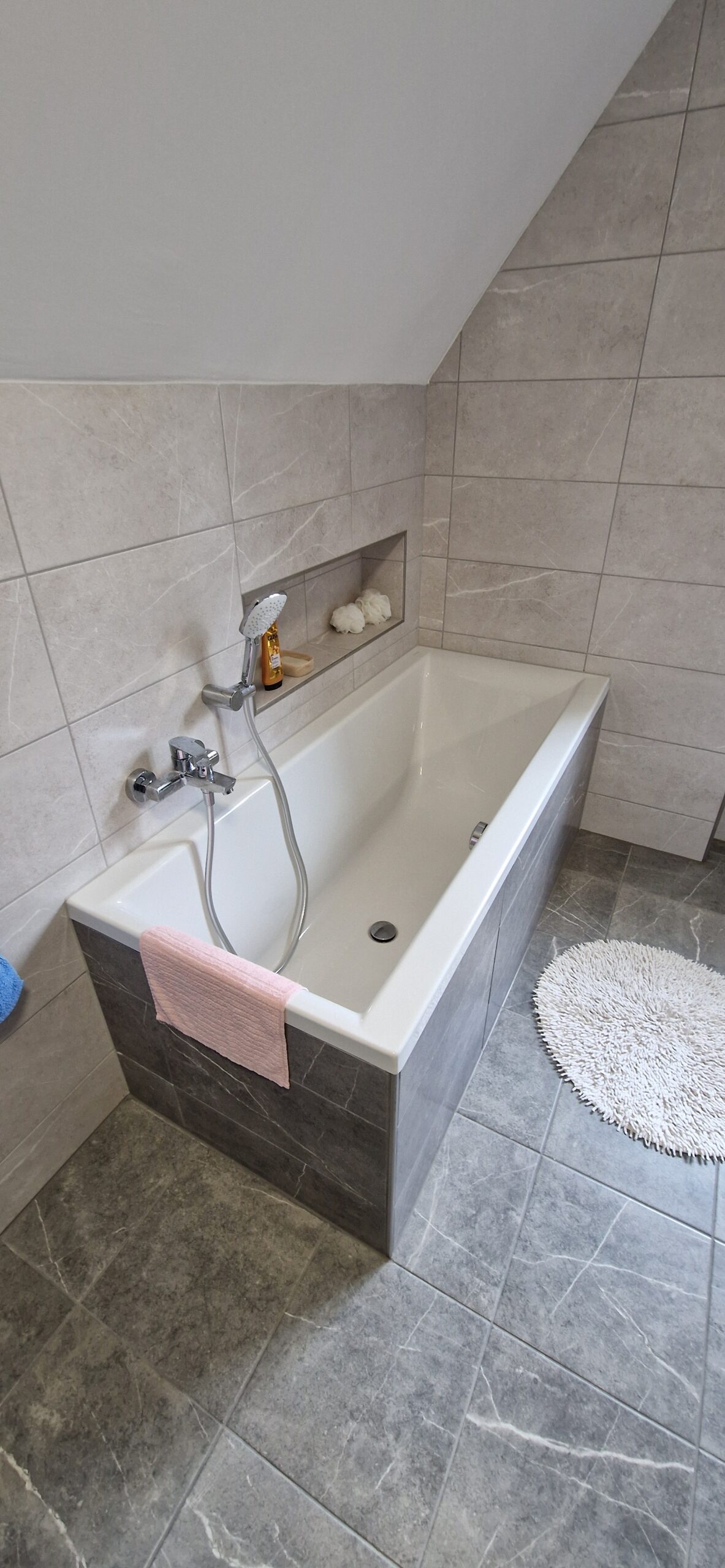Obklad Saboya Gris. Matný keramický obklad imitace kamene s jemným řádkováním série Saboya, výborného designu vhodný převážně do koupelny.